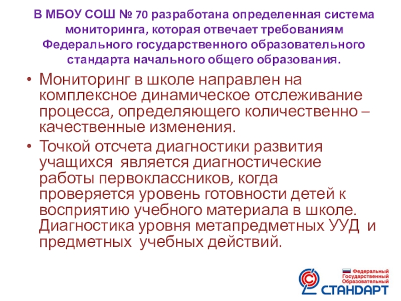 Слайд 6В МБОУ СОШ № 70 разработана определенная система мониторинга, которая отвечает