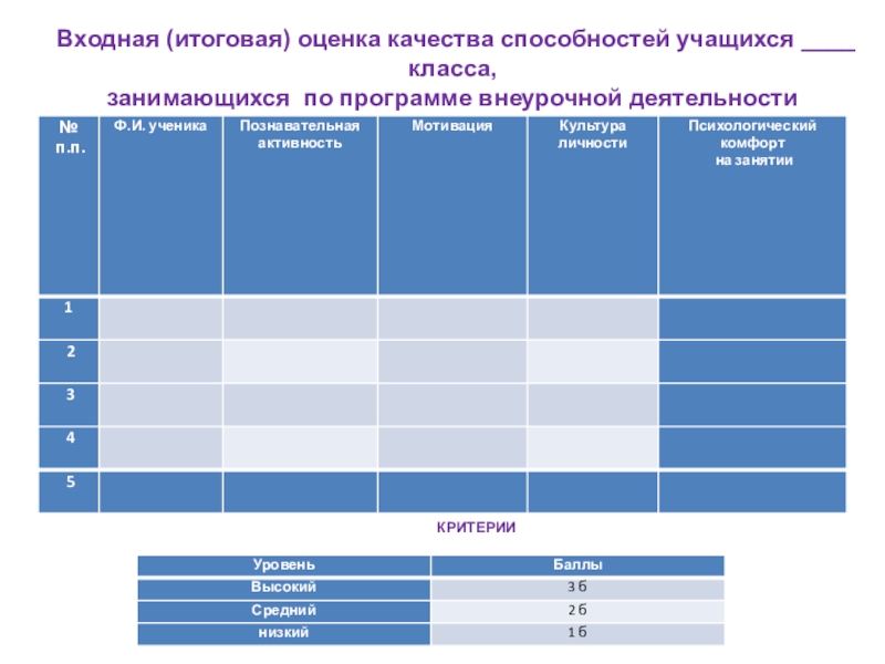 Слайд 36Входная (итоговая) оценка качества способностей учащихся ____ класса,