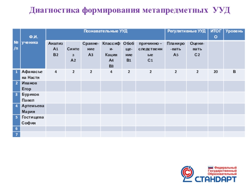 Слайд 16Диагностика формирования метапредметных УУД