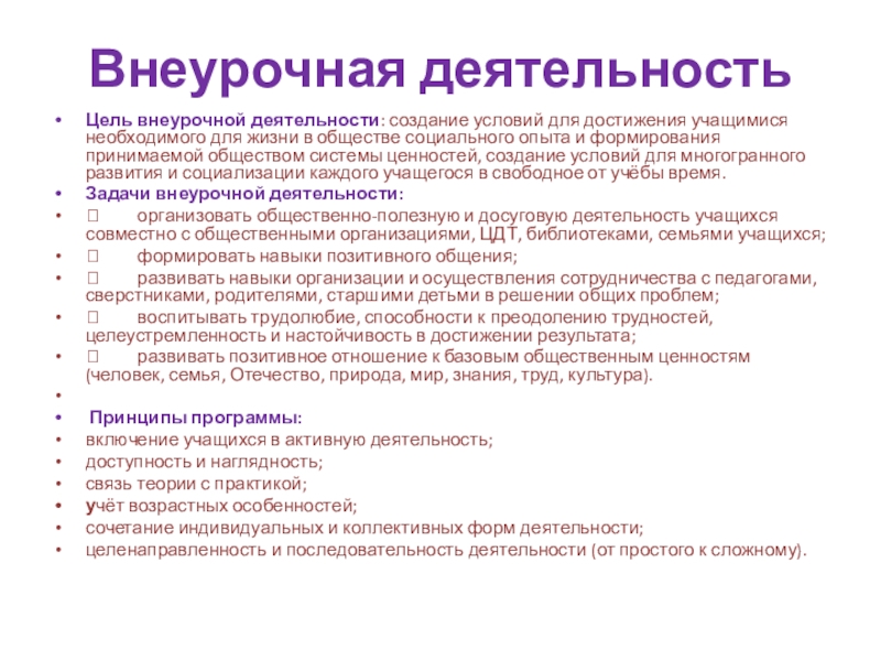 Задачи внеурочной деятельности: