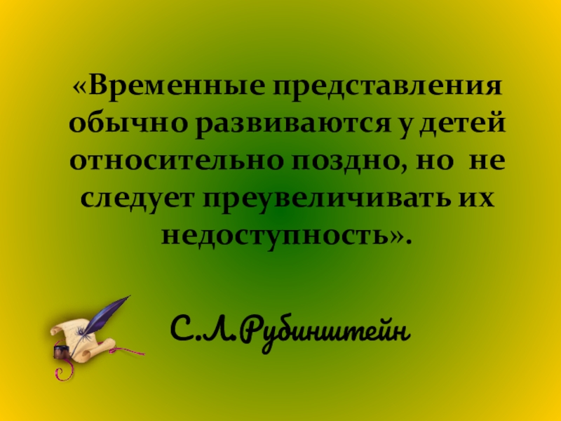 Слайд 2«Временные представления обычно развиваются у детей относительно поздно, но не следует