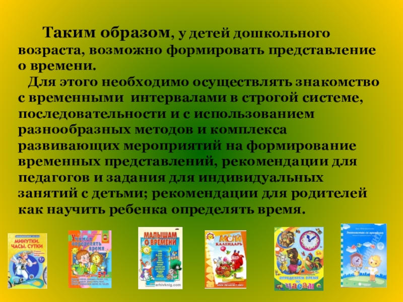 формы и методы ознакомления со временем осуществлять в соответствии с возрастными особенностями дошкольников;