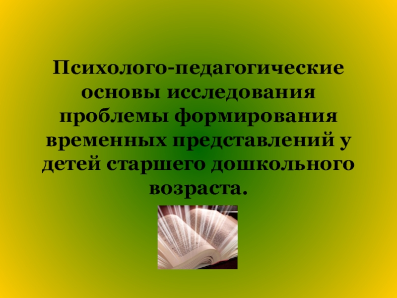 Слайд 11Психолого-педагогические основы исследования проблемы формирования временных представлений у детей старшего дошкольного