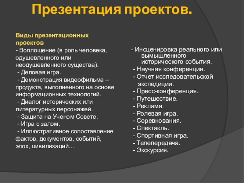 Виды презентационных проектов