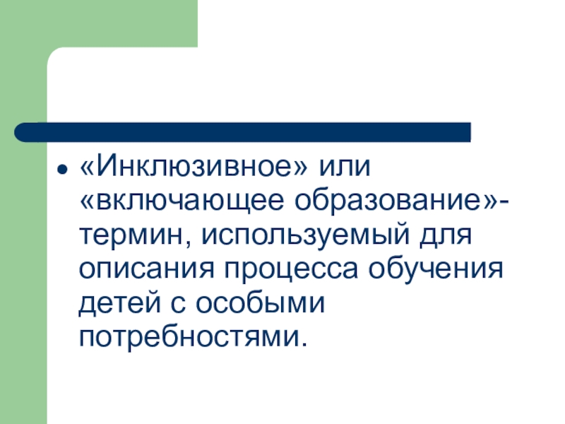 «Инклюзивное» или «включающее образование»-термин, используемый для описания процесса обучения детей с особыми потребностями.