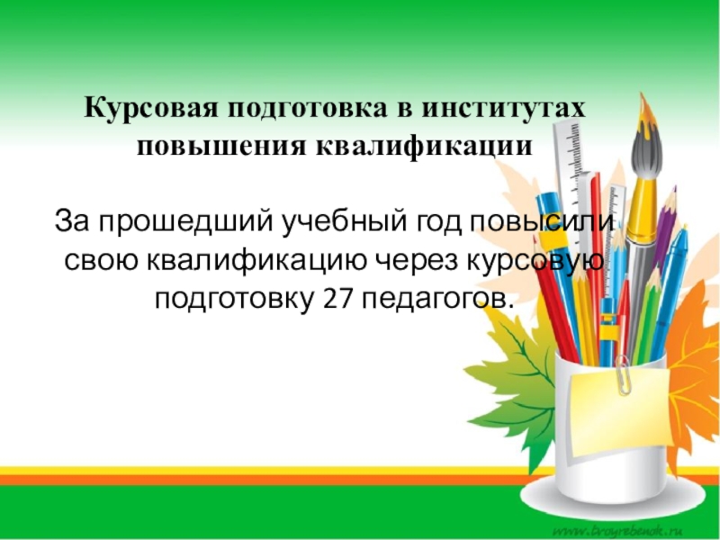 Слайд 7Курсовая подготовка в институтах повышения квалификации