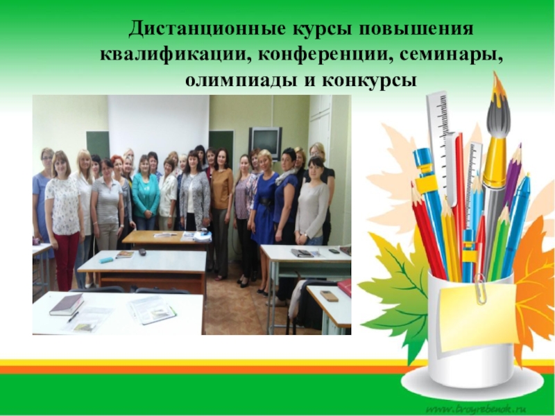 Слайд 8Дистанционные курсы повышения квалификации, конференции, семинары, олимпиады и конкурсы