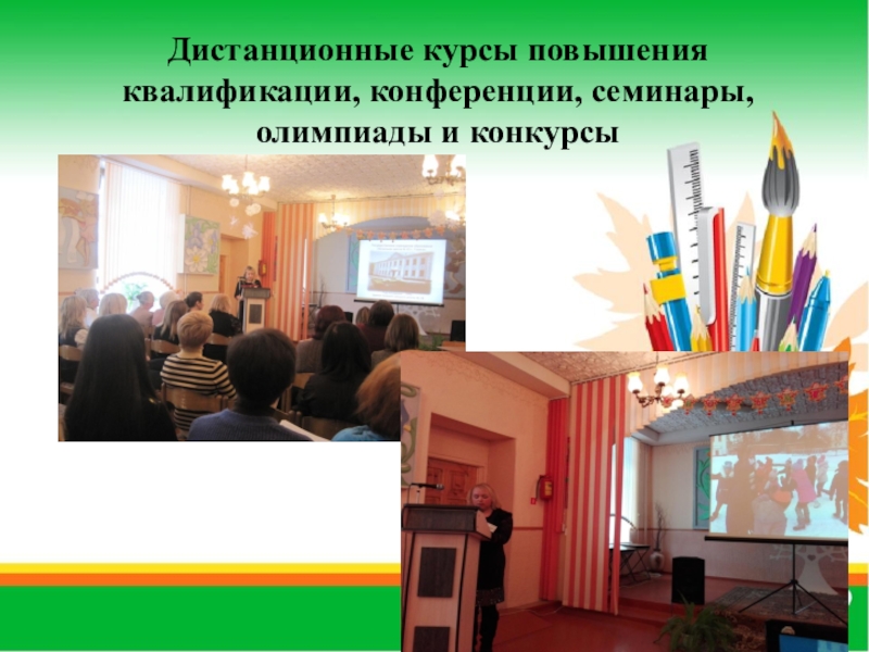 Слайд 9Дистанционные курсы повышения квалификации, конференции, семинары, олимпиады и конкурсы