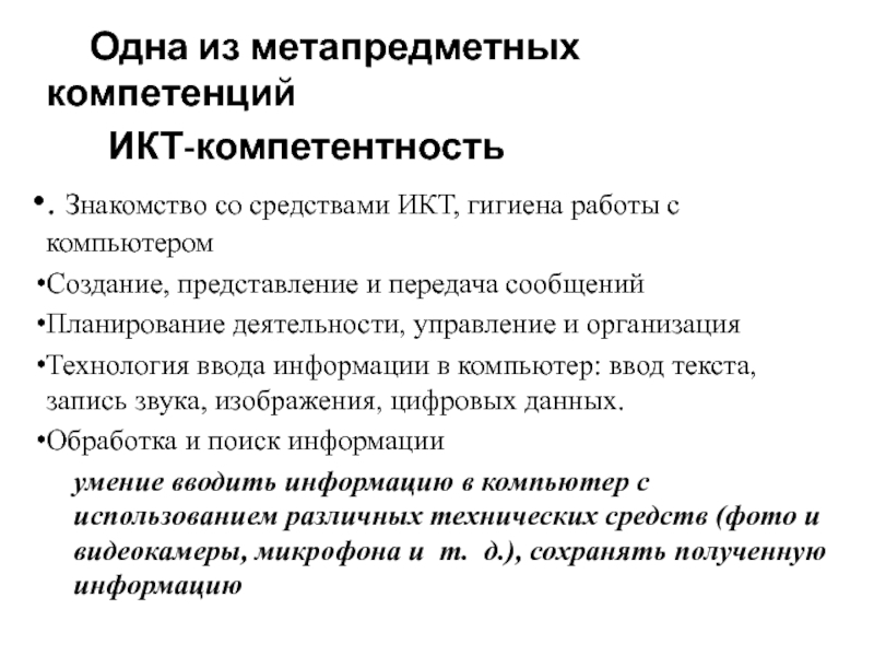 умение вводить информацию в компьютер с использованием различных технических средств (фото и видеокамеры, микрофона и т. д.), сохранять полученную информацию