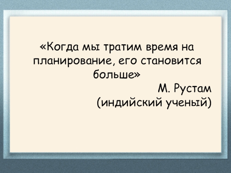 Слайд 2«Когда мы тратим время на планирование, его становится больше»