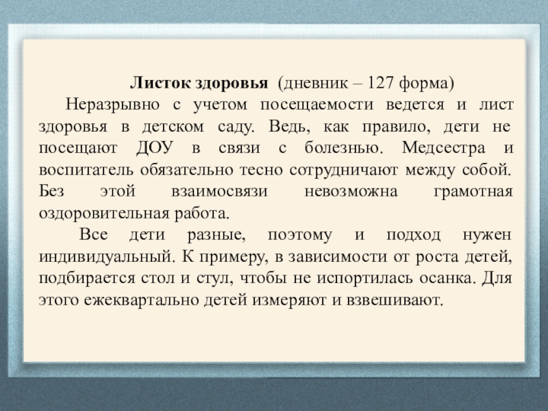 Слайд 22 Листок здоровья (дневник – 127 форма)