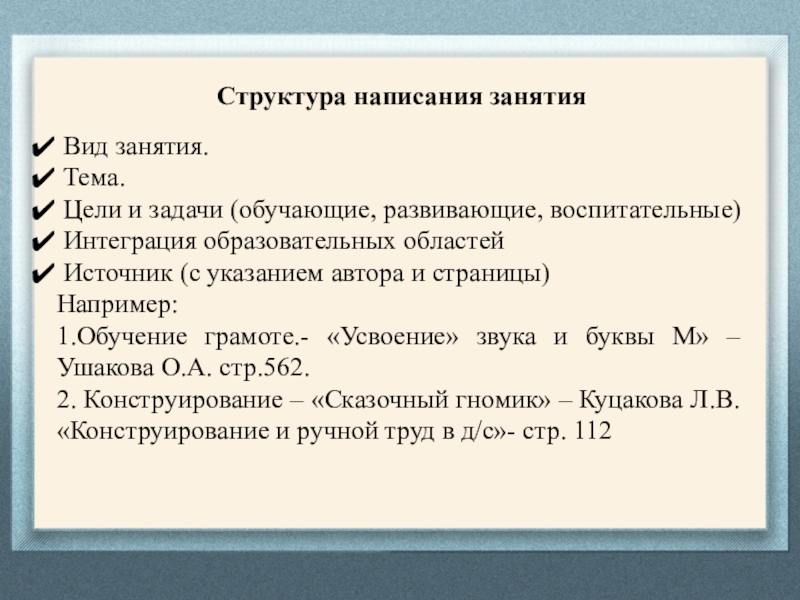 обязательное ведение плана образовательной работы. В своей работе педагог использует показания СанПиНа, которые регламентируют не превышать время всех занятий. В младших группах занятия должны проходить не более 30 мин, в средних – 40 мин, в старших – 45 мин, в подготовительных – 1,5 часа. Обязательные перерывы между занятиями, продолжительность которых – не менее 10 минут. Во время занятия также делаются перерывы для того, чтобы провести физкультминутку.