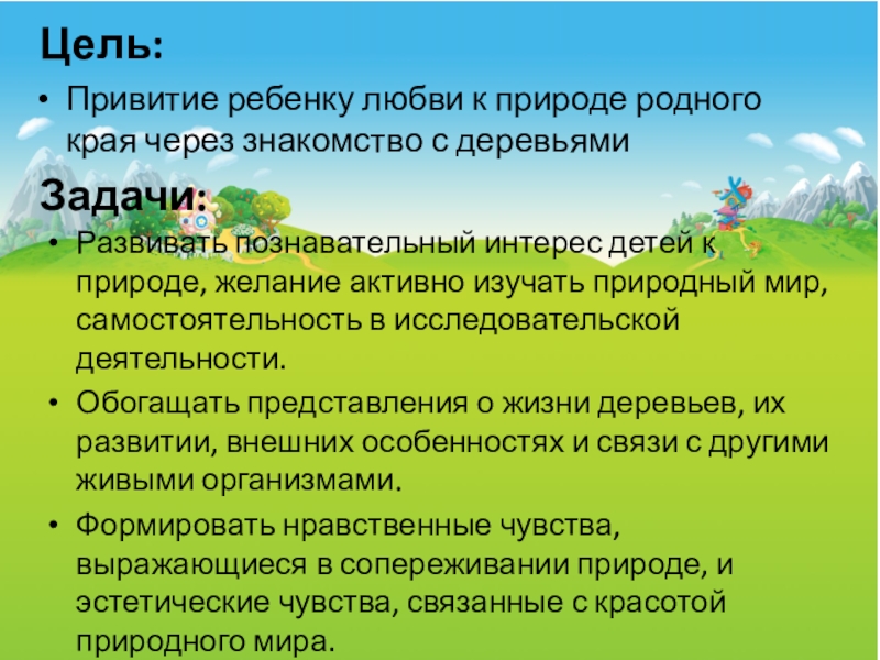 Обогащать представления о жизни деревьев, их развитии, внешних особенностях и связи с другими живыми организмами.