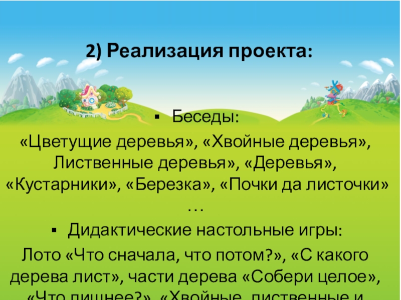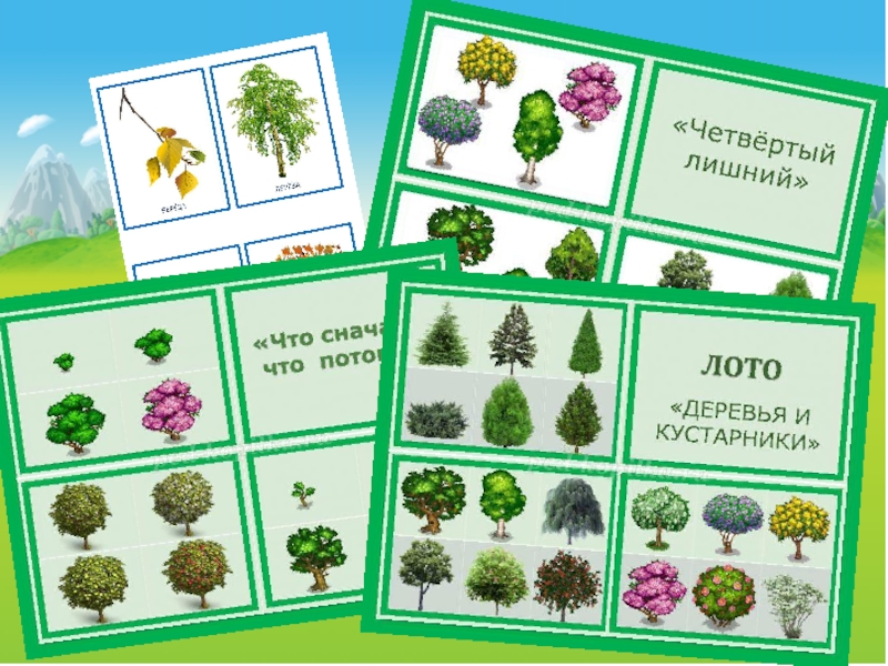 Лото «Что сначала, что потом?», «С какого дерева лист», части дерева «Собери целое», «Что лишнее?», «Хвойные, лиственные и цветущие»…