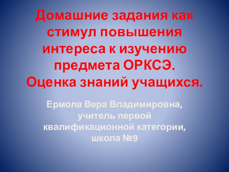 Ермола Вера Владимировна, учитель первой квалификационной категории, школа №9