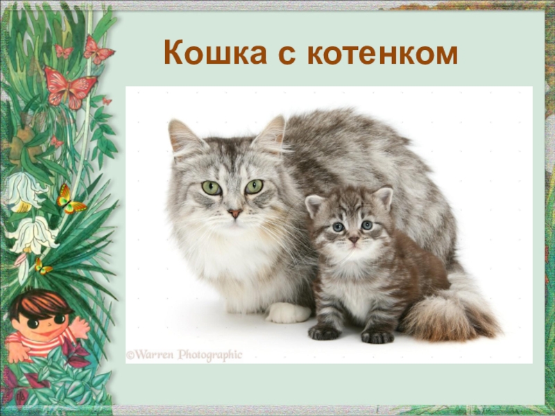 Слайд 8Кошка с котенком