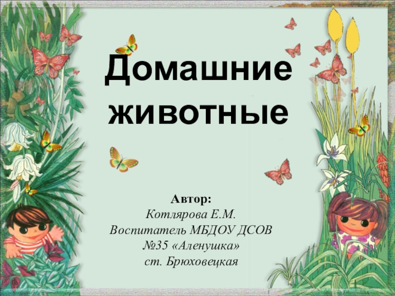 Домашние животныеАвтор:Котлярова Е.М.Воспитатель МБДОУ ДСОВ №35 «Аленушка» ст. Брюховецкая