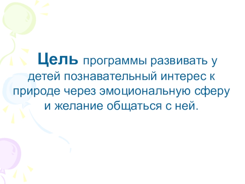 Цель программы развивать у детей познавательный интерес к природе через эмоциональную сферу и желание общаться с ней.