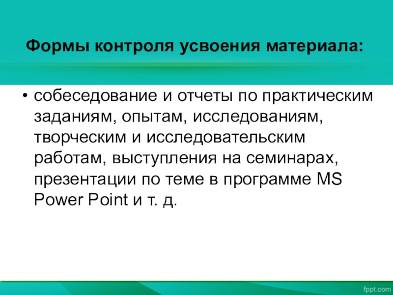 творческим и исследовательским работам, выступления на семинарах, презентации по теме в программе MS Power Point и т. д.