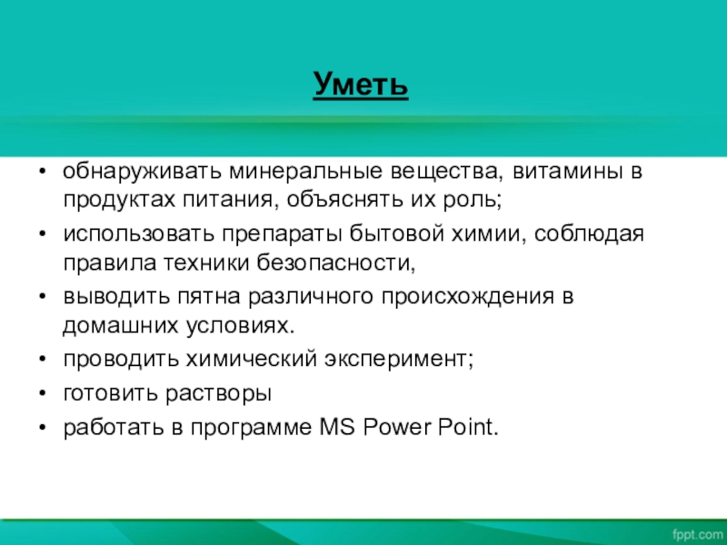 обнаруживать минеральные вещества, витамины в продуктах питания, объяснять их роль;
