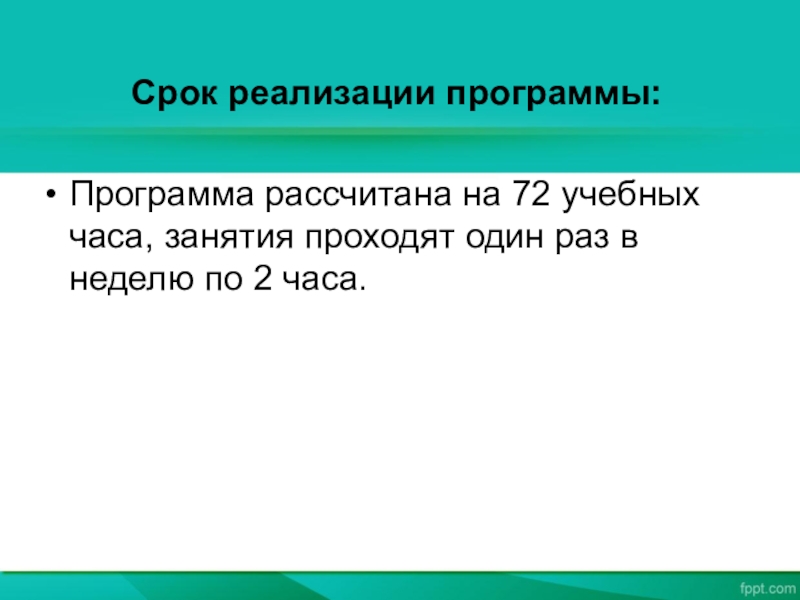 Программа рассчитана на 72 учебных часа, занятия проходят один