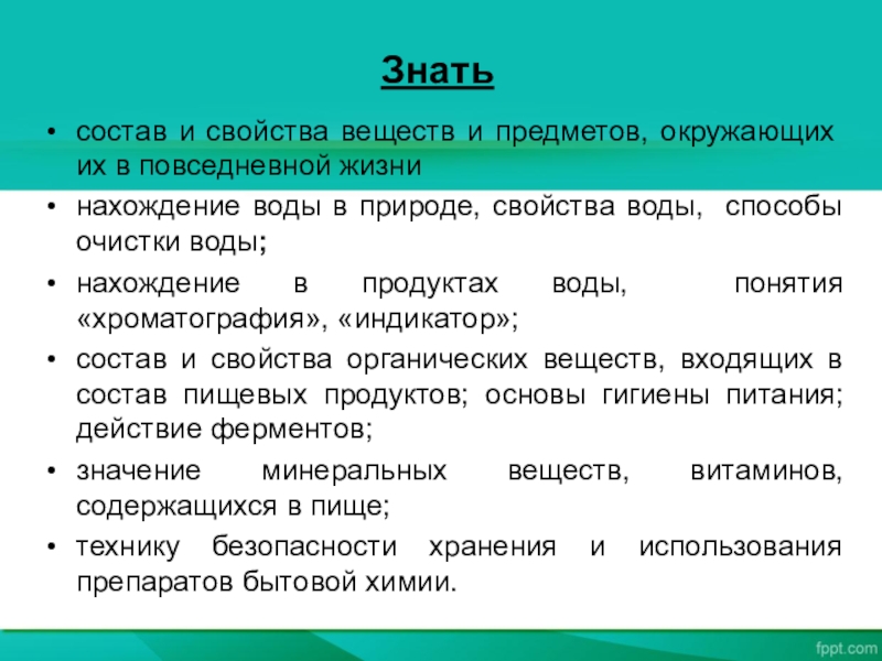 состав и свойства веществ и предметов, окружающих их в повседневной жизни