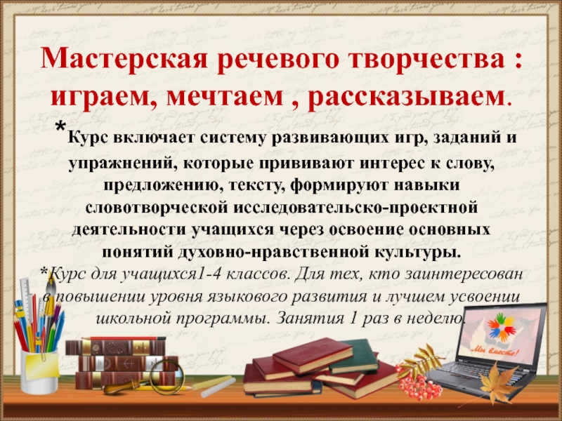 Мастерская речевого творчества. Играем, мечтаем, рассказываем.