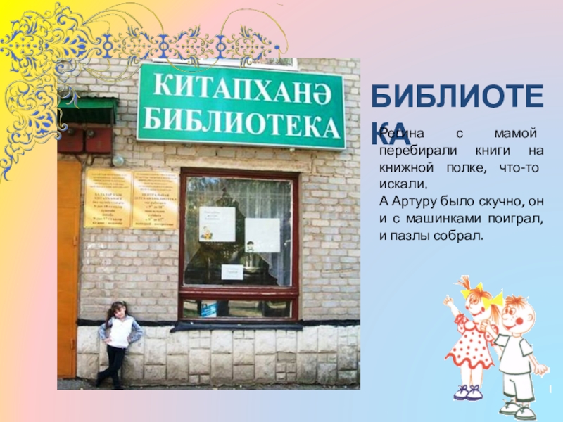 Артур радостно позвал с другого конца зала маму, чтобы показать книгу. Но библиотекарь его остановила и объяснила, что в библиотеке ведут себя тихо и разговаривают только шёпотом, чтобы не мешать другим заниматься.