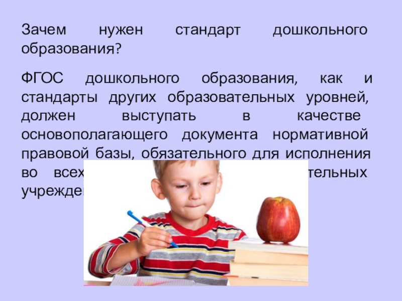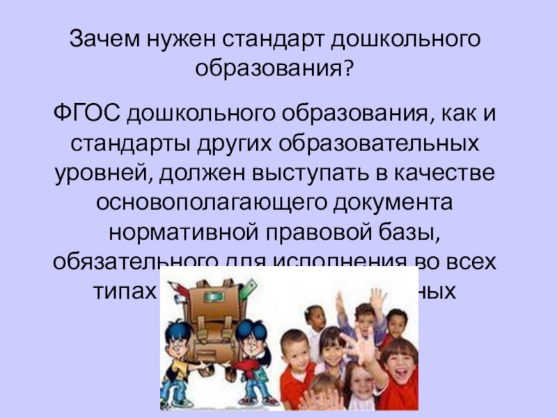 Слайд 9Зачем нужен стандарт дошкольного образования?
