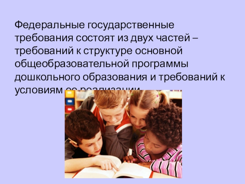 Слайд 5Федеральные государственные требования состоят из двух частей – требований к структуре