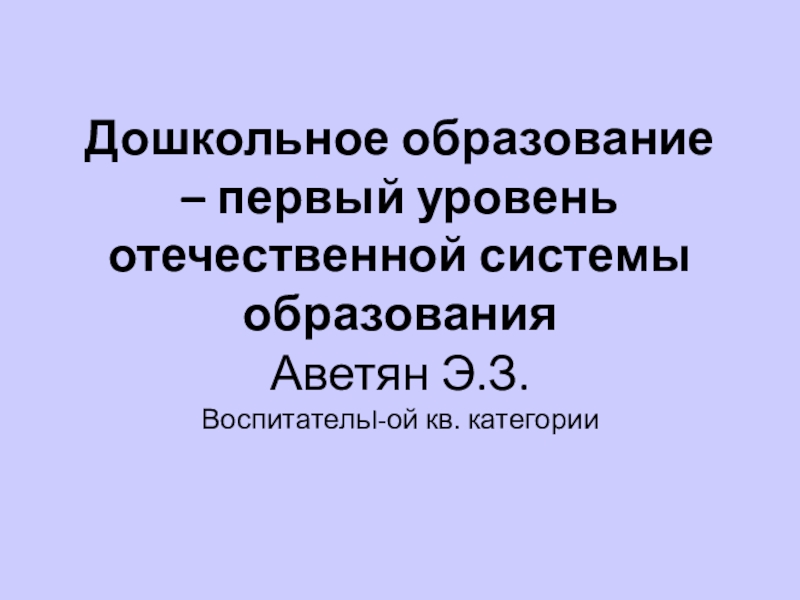 Слайд 1Дошкольное образование – первый уровень отечественной системы образования