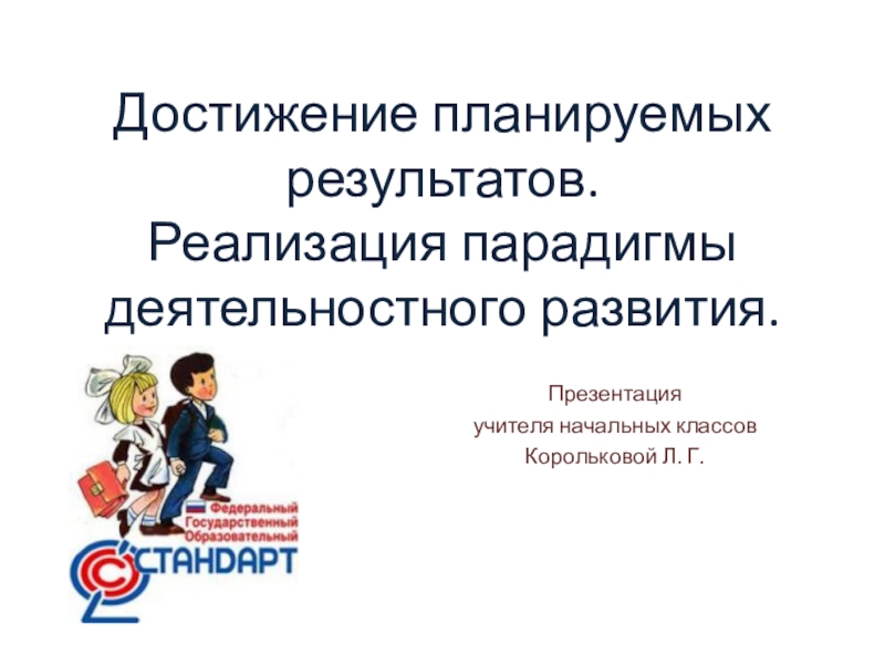 Достижение планируемых результатов. Реализация парадигмы деятельностного развития.Презентация учителя начальных классовКорольковой Л. Г.