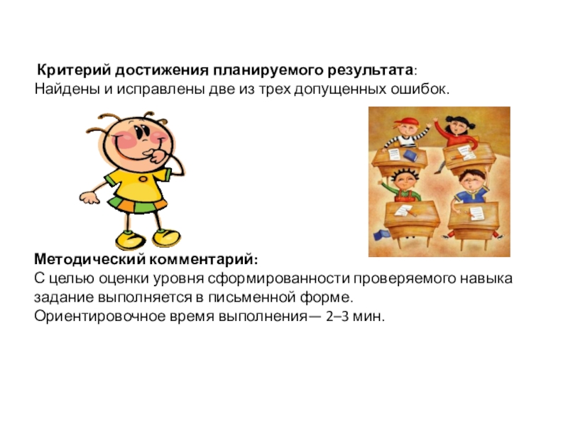 Слайд 7 Критерий достижения планируемого результата: Найдены и исправлены две из трех