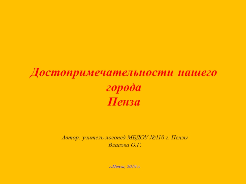 Достопримечательности нашего городаПензаАвтор: учитель-логопед МБДОУ №110 г. ПензыВласова О.Г.г.Пенза, 2019 г.