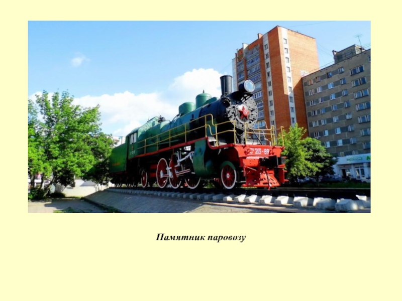 Слайд 19Памятник паровозу