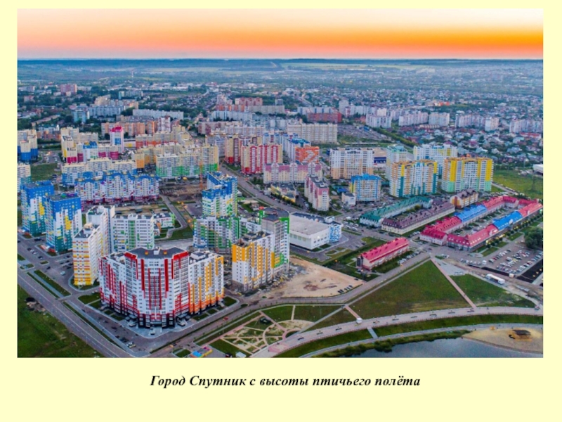 Слайд 15Город Спутник с высоты птичьего полёта
