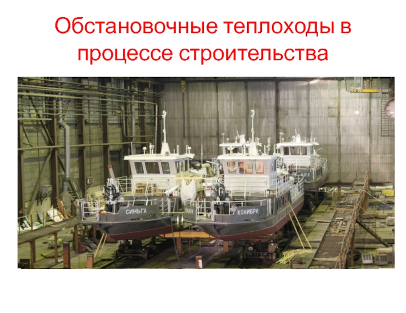 Слайд 9Обстановочные теплоходы в процессе строительства