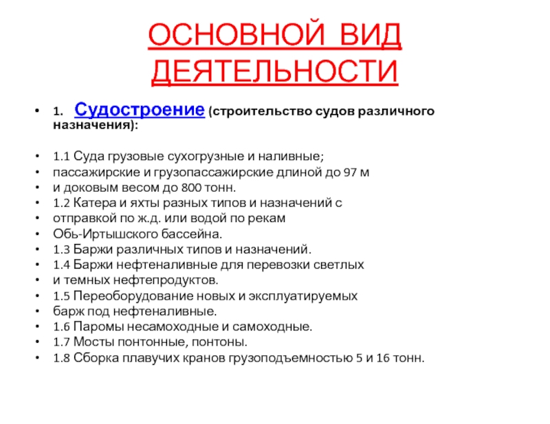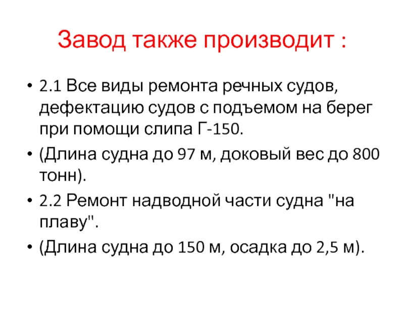 2.1 Все виды ремонта речных судов, дефектацию судов с