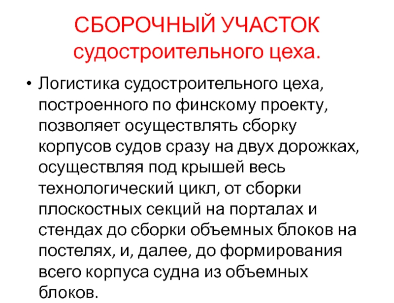 Логистика судостроительного цеха, построенного по финскому проекту,