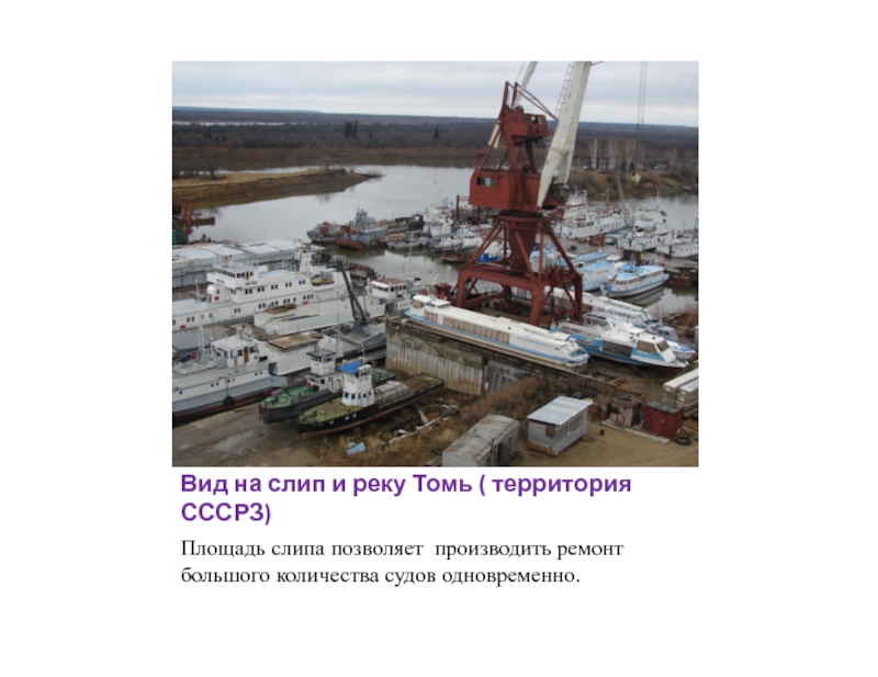 Слайд 21Вид на слип и реку Томь ( территория СССРЗ)