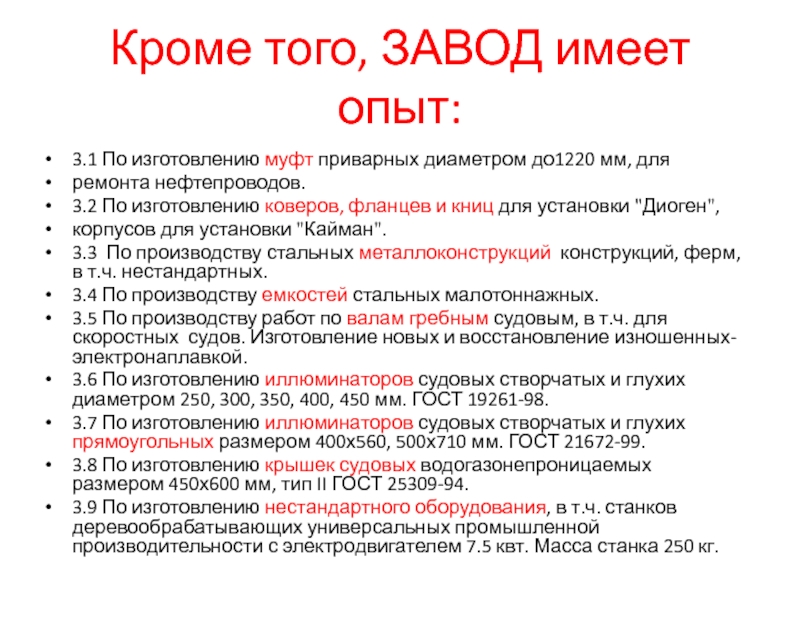 Слайд 19Кроме того, ЗАВОД имеет опыт: