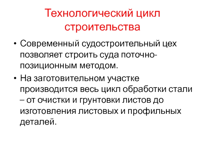 Современный судостроительный цех позволяет строить суда поточно-позиционным методом.
