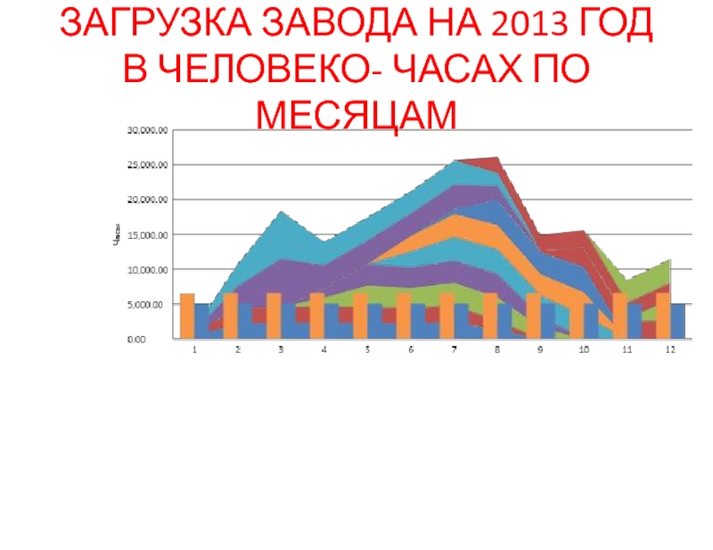 Слайд 26ЗАГРУЗКА ЗАВОДА НА 2013 ГОД В ЧЕЛОВЕКО- ЧАСАХ ПО МЕСЯЦАМ