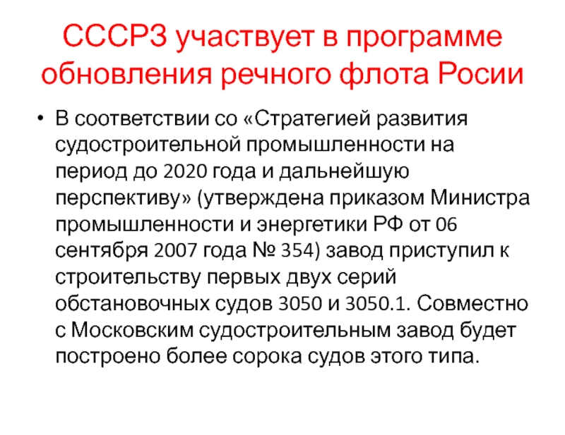 Слайд 14СССРЗ участвует в программе обновления речного флота Росии