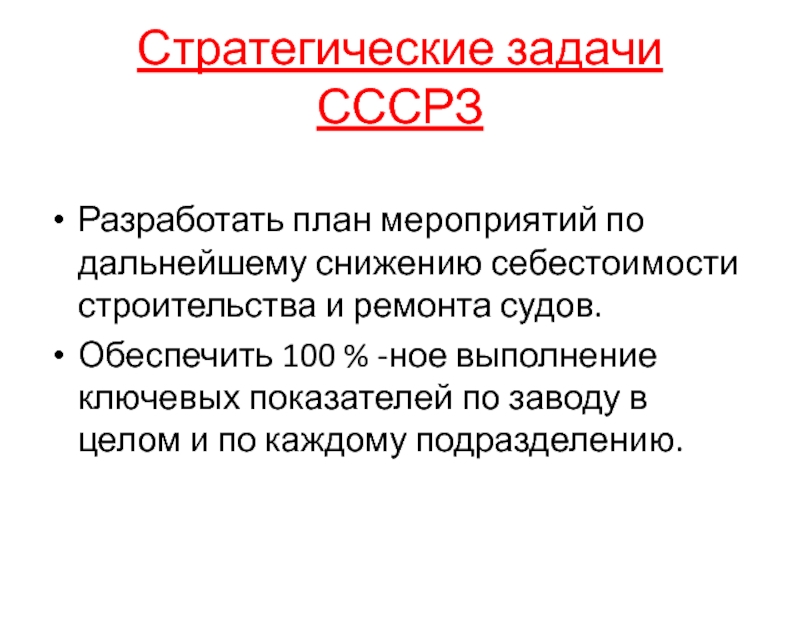 Обеспечить 100 % -ное выполнение ключевых показателей по заводу в целом и по каждому подразделению.
