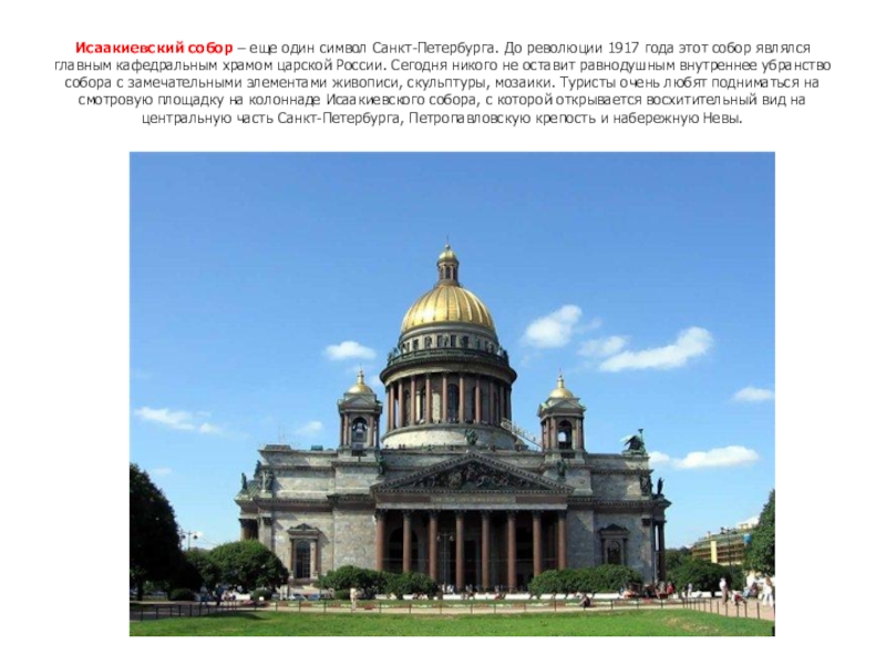 В 1914 году Санкт-Петербург стал называться Петроградом, а в советское время был переименован в Ленинград, в честь вождя мирового пролетариата В.И. Ленина.