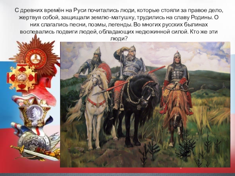 Слайд 4С древних времён на Руси почитались люди, которые стояли за правое
