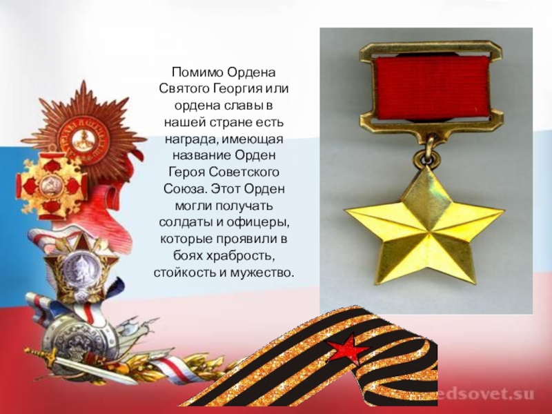 Слайд 8Помимо Ордена Святого Георгия или ордена славы в нашей стране есть