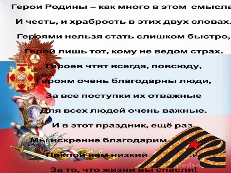 -Молодцы. Герой - это человек, совершивший подвиг, храбрый поступок ради людей, отечества. А что же такое Отечество?