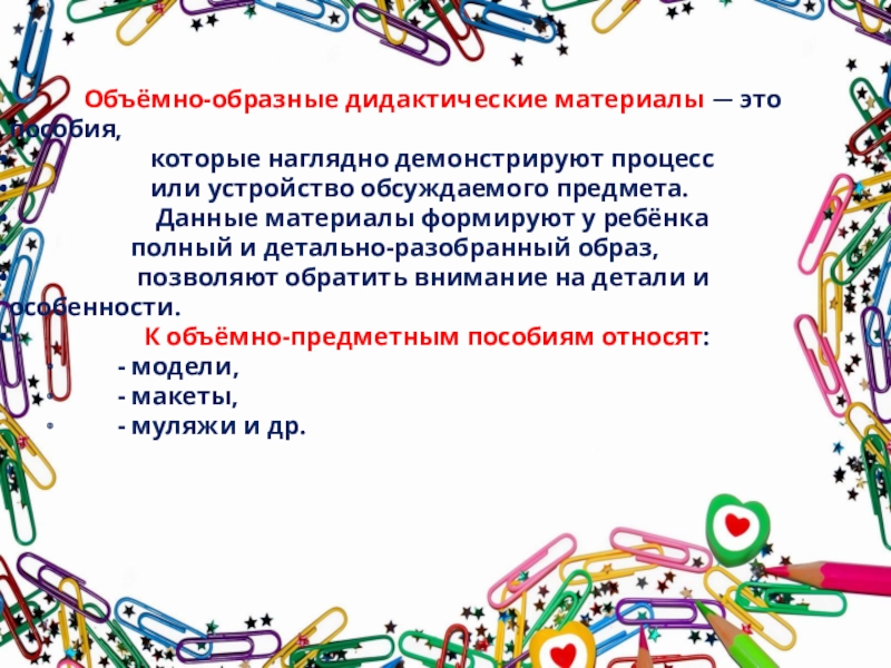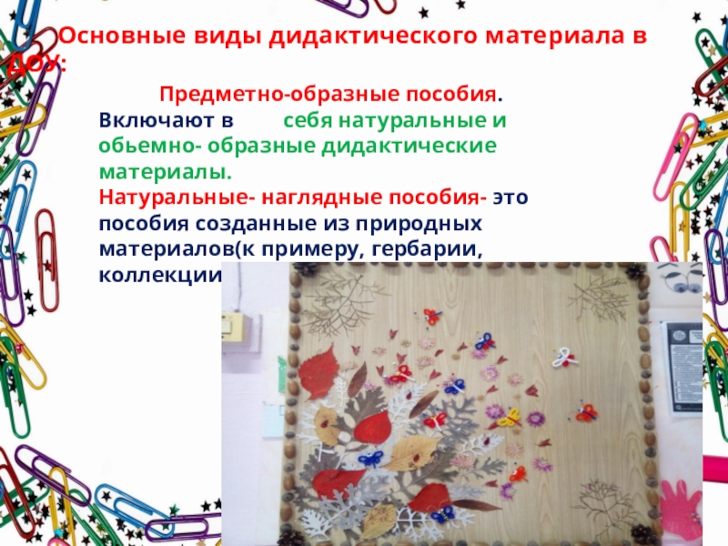 Предметно-образные пособия. Включают в себя натуральные и обьемно- образные дидактические материалы.